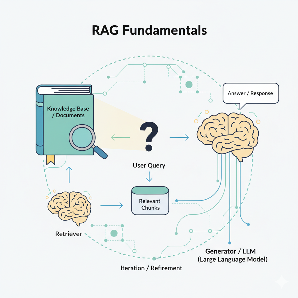• Retrieval: Think of it as asking a librarian to pull the most relevant index cards from your library for your question. We don’t hand the AI the whole book; we hand it just the best snippets.